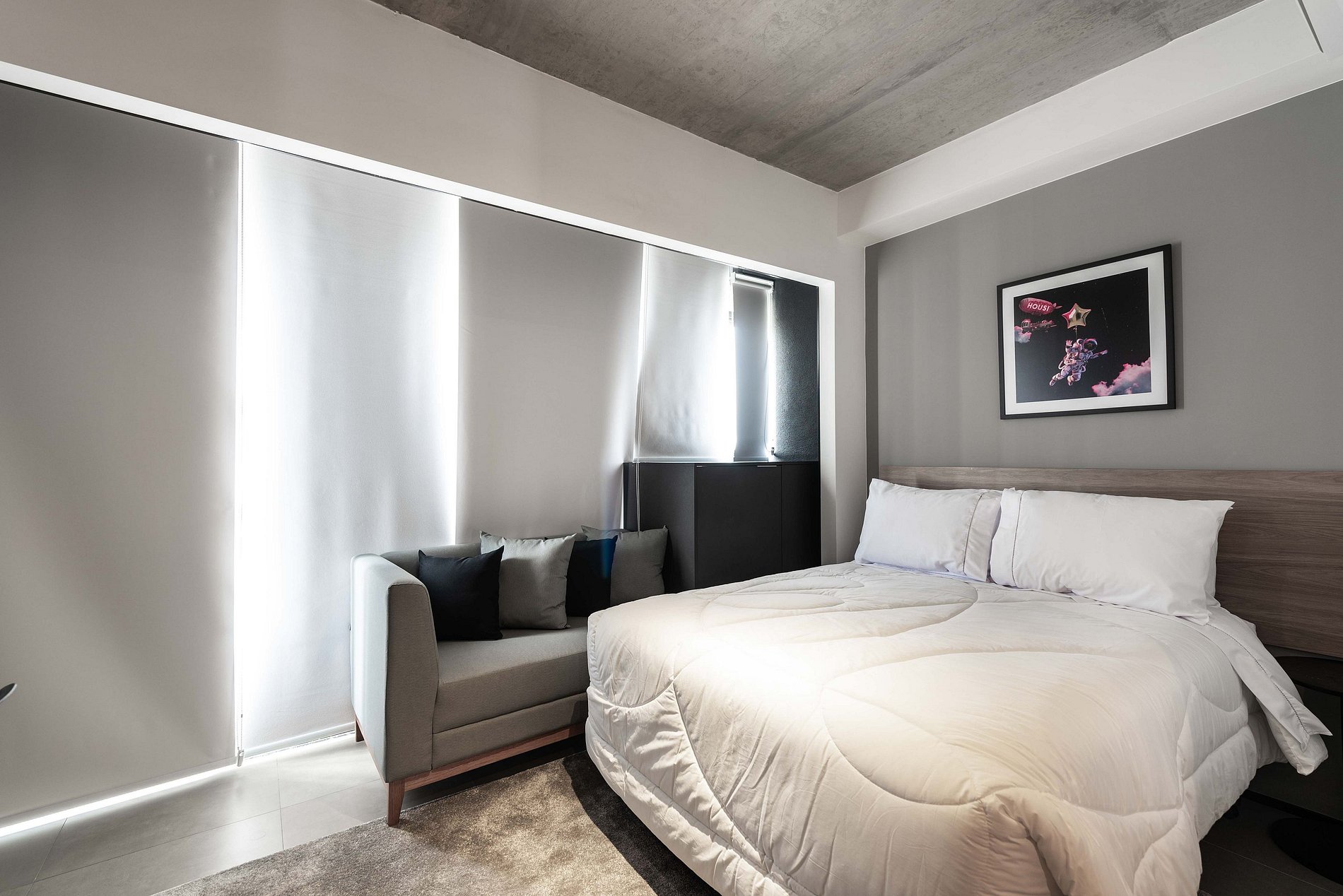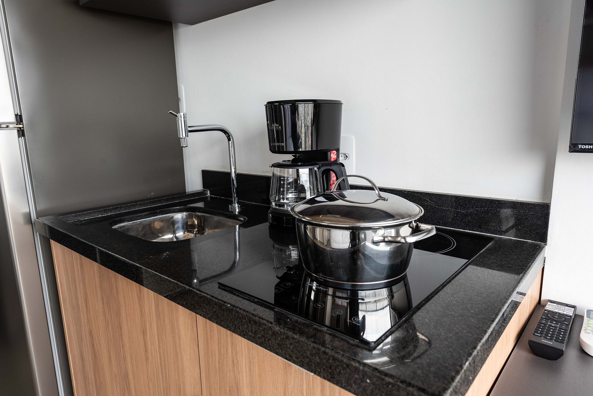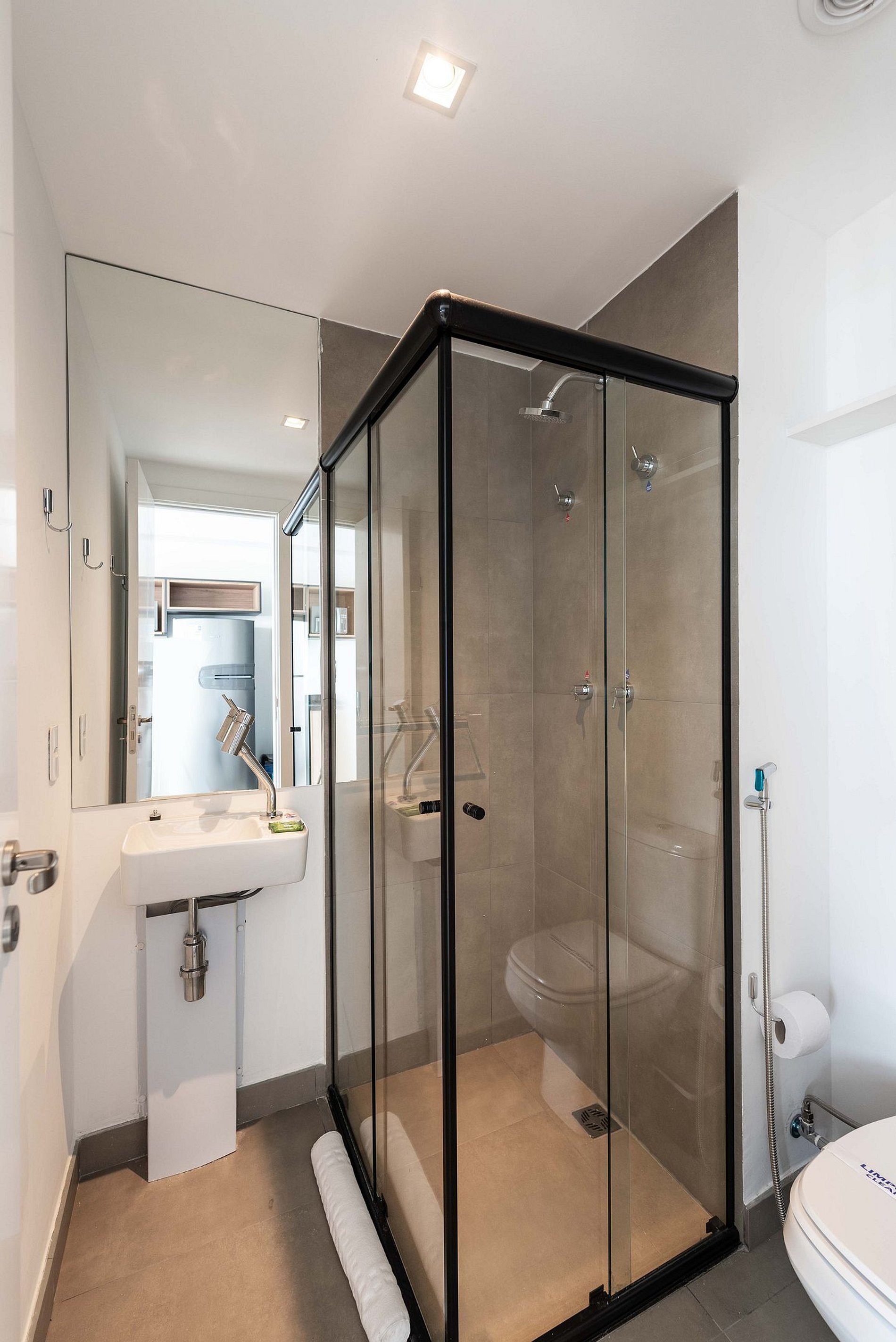 O Studio possui 25m2, e muito prático para atender as necessidades. Os hóspedes terão acesso livre a todas as áreas comuns do condomínio, exceto ao salão de festas. O condomínio possui lavanderia OMO compartilhada (valores à parte), Coworking, lounge, cozinha compartilhada, espaço PET.