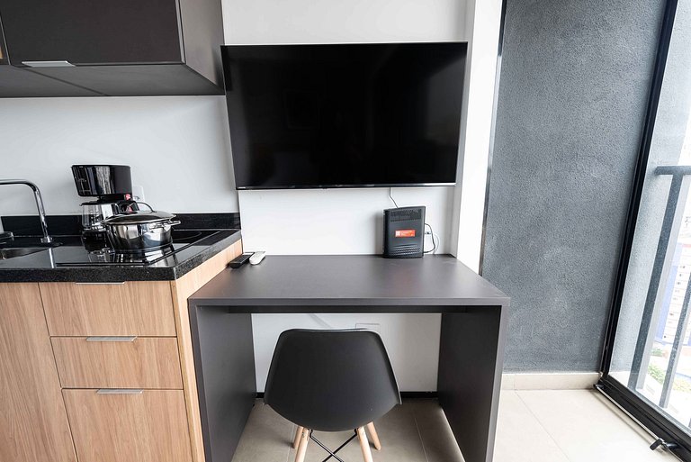 O studio fica em uma região tranquila, fácil acesso para Avenida Paulista, Shopping e Centro de Convenções Frei Caneca, Metro Mackenzie Higienópolis. O apto atende perfeitamente dois hóspedes, e as áreas comuns são totalmente funcionais.