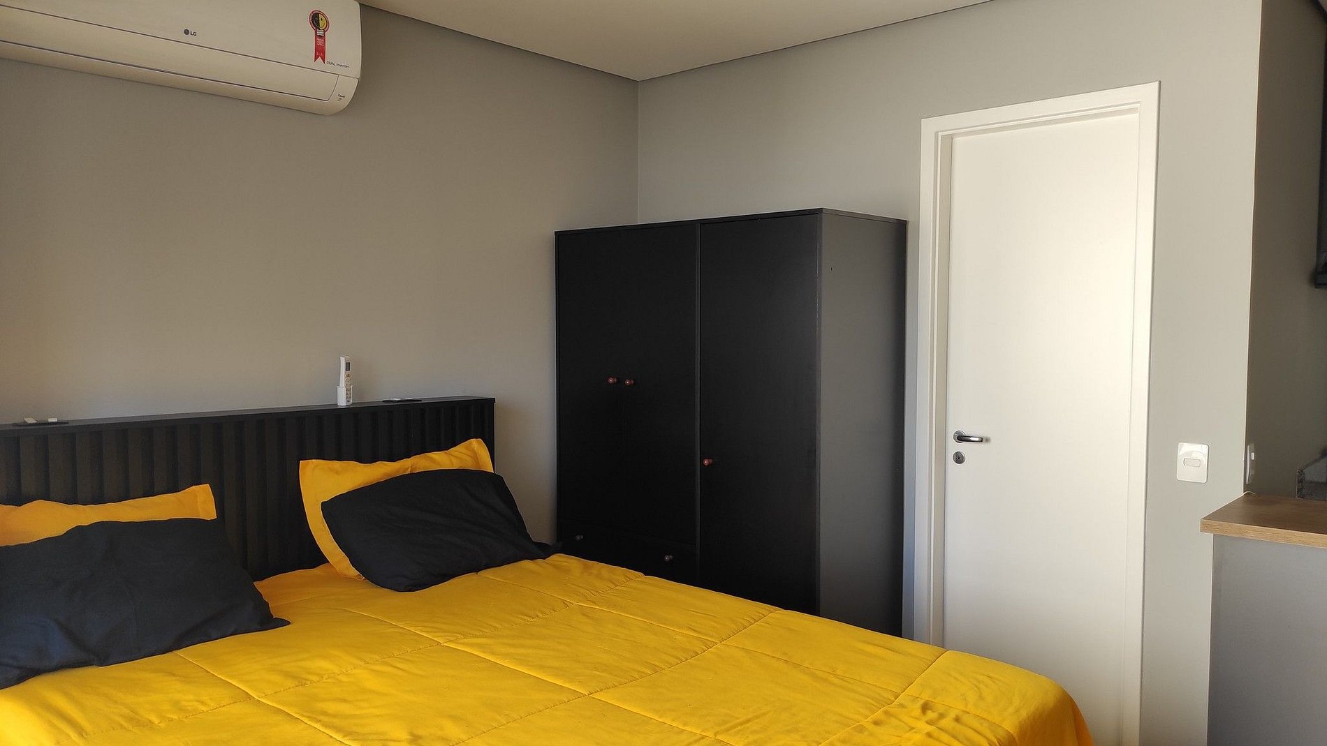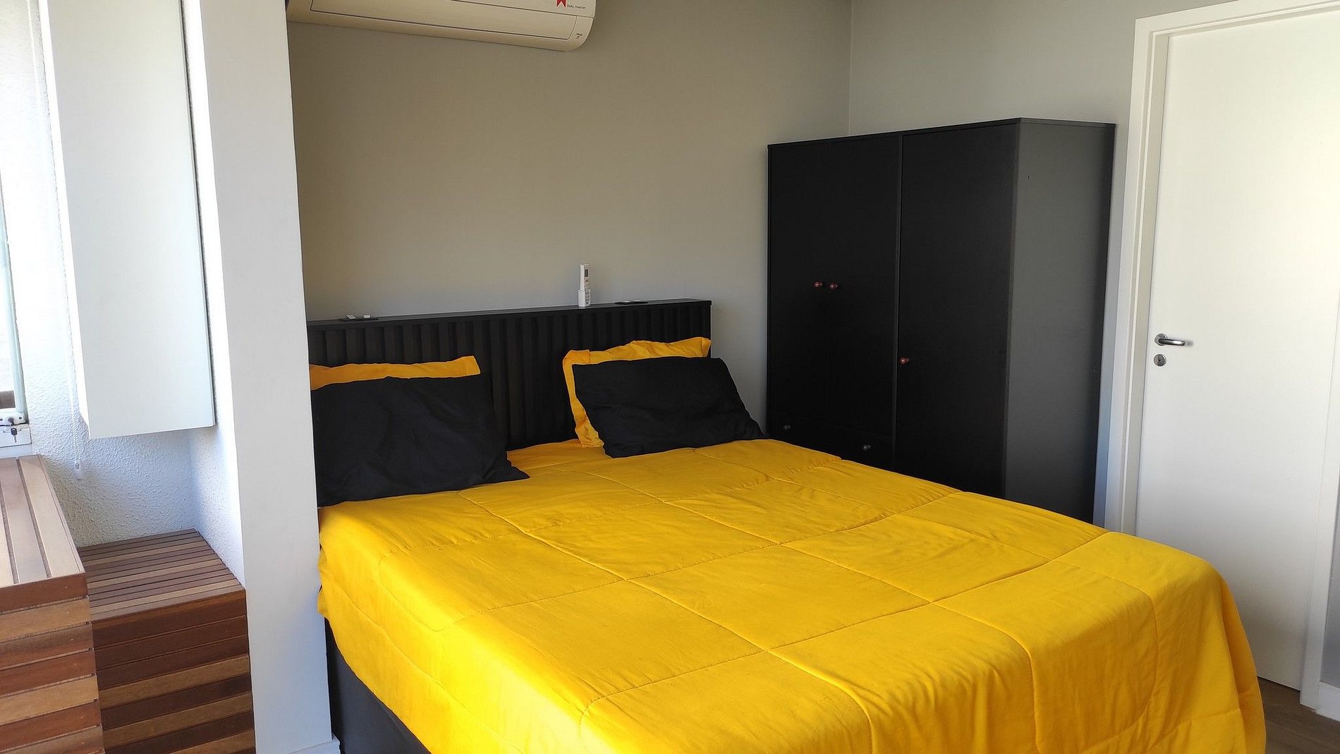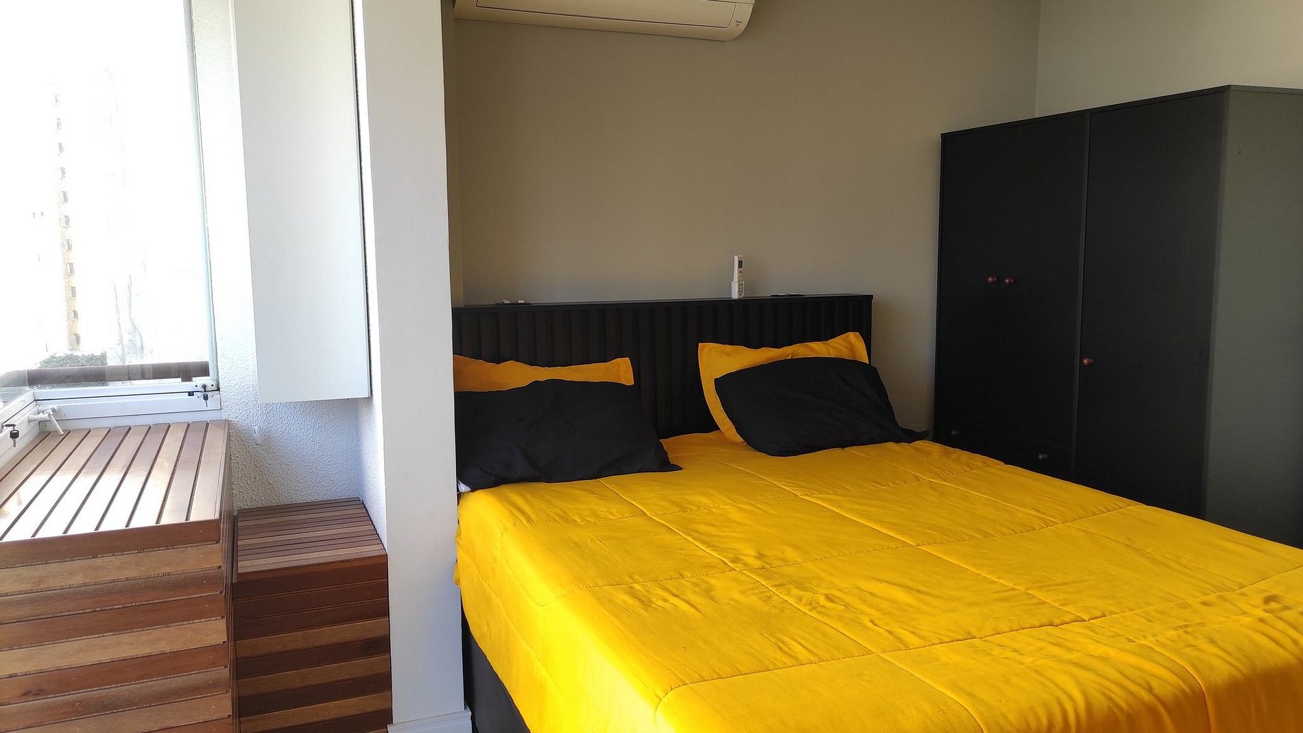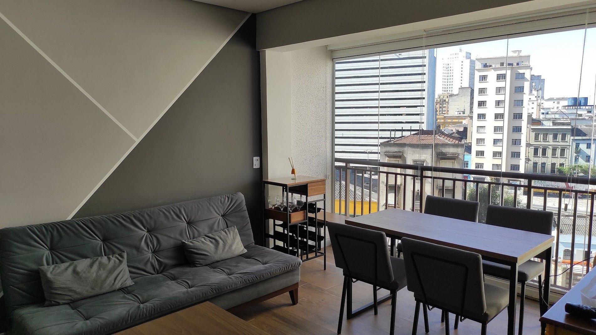 O conceito aberto da varanda, gera uma maior integração no Studio. O acesso ao apto é Self check in, onde enviaremos senha da porta e quando chegar no condomínio, só apresentar o documento pessoal, para que possam fazer a liberação.