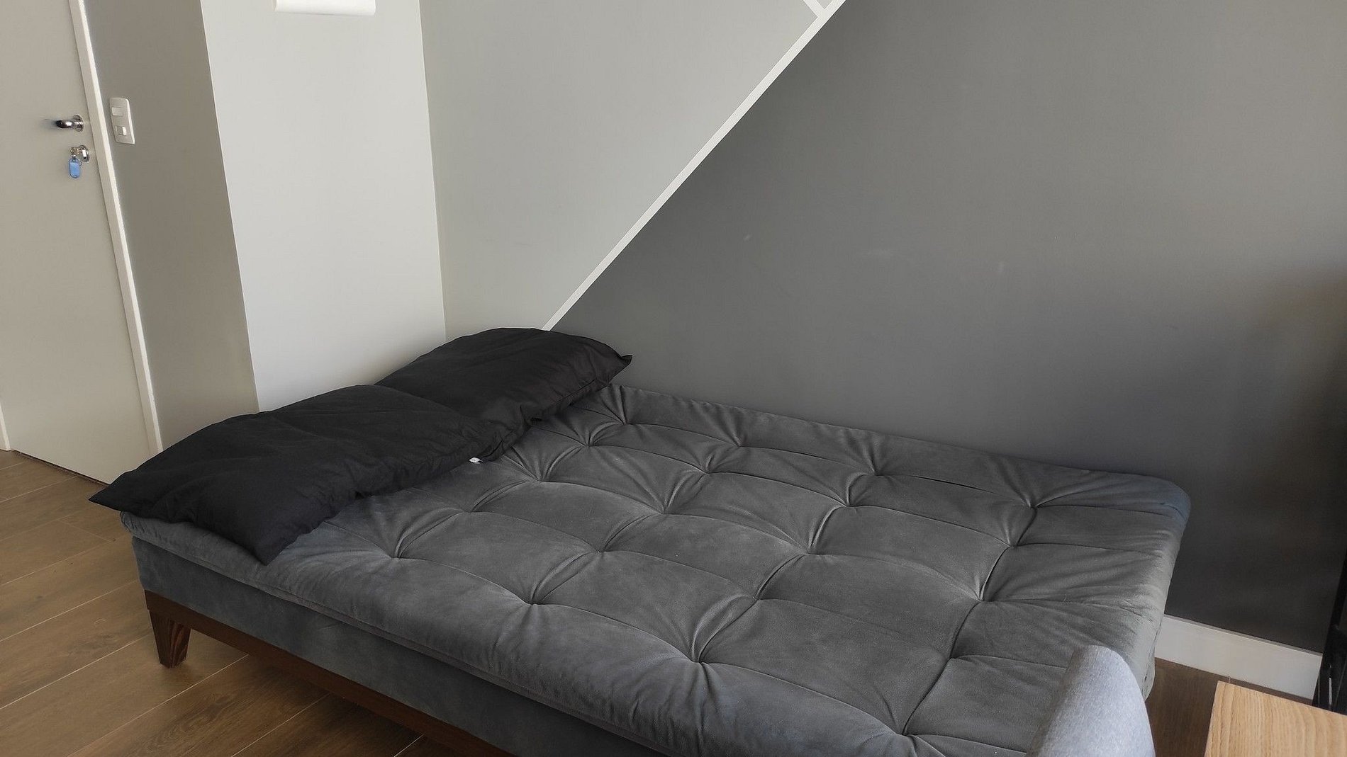 O Studio fica no 3º andar e está localizado no condomínio Sky Pauliceia. O ambiente acomoda 3 pessoas de maneira confortável, sendo 2 na cama queen e 1 hóspede no sofá cama.