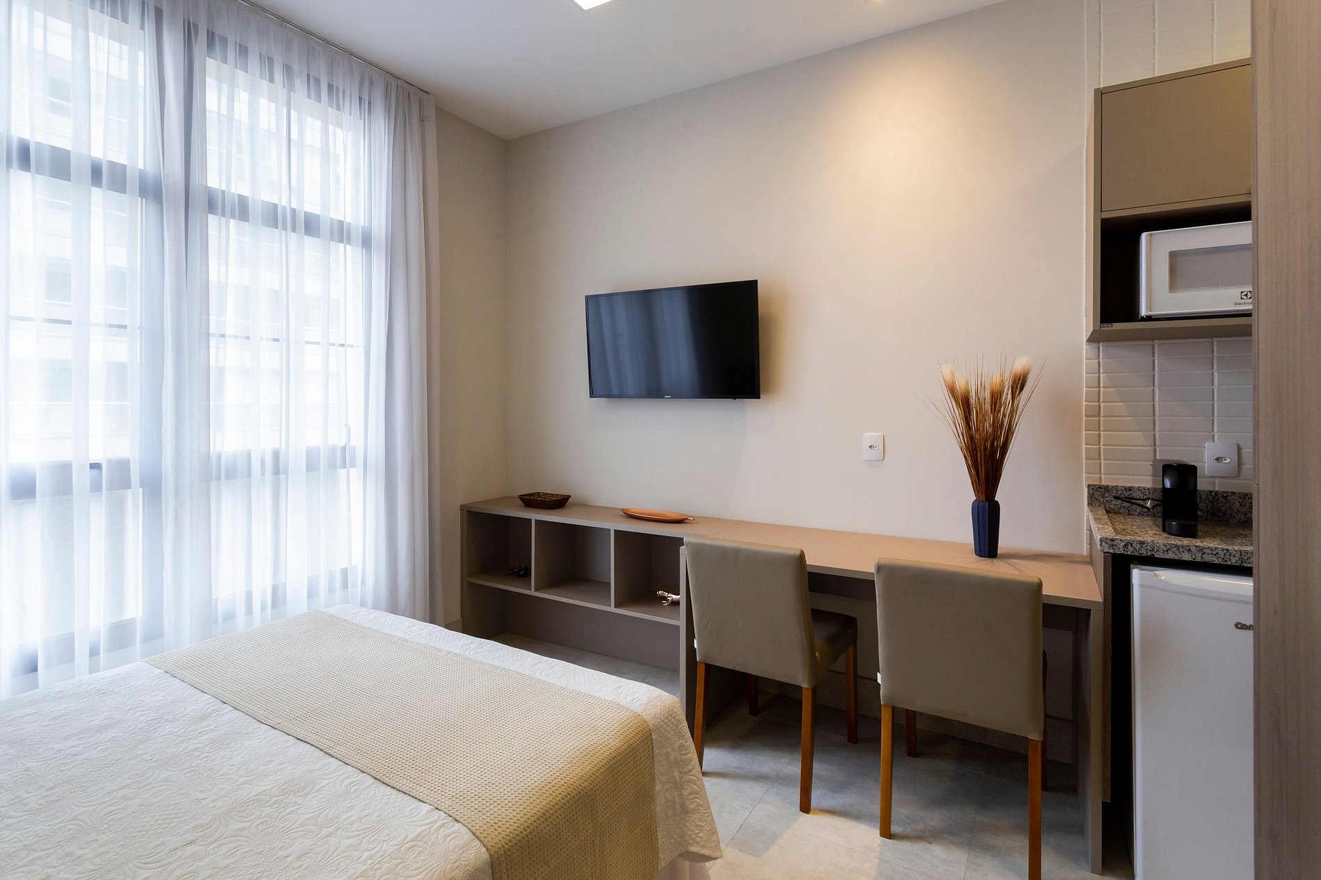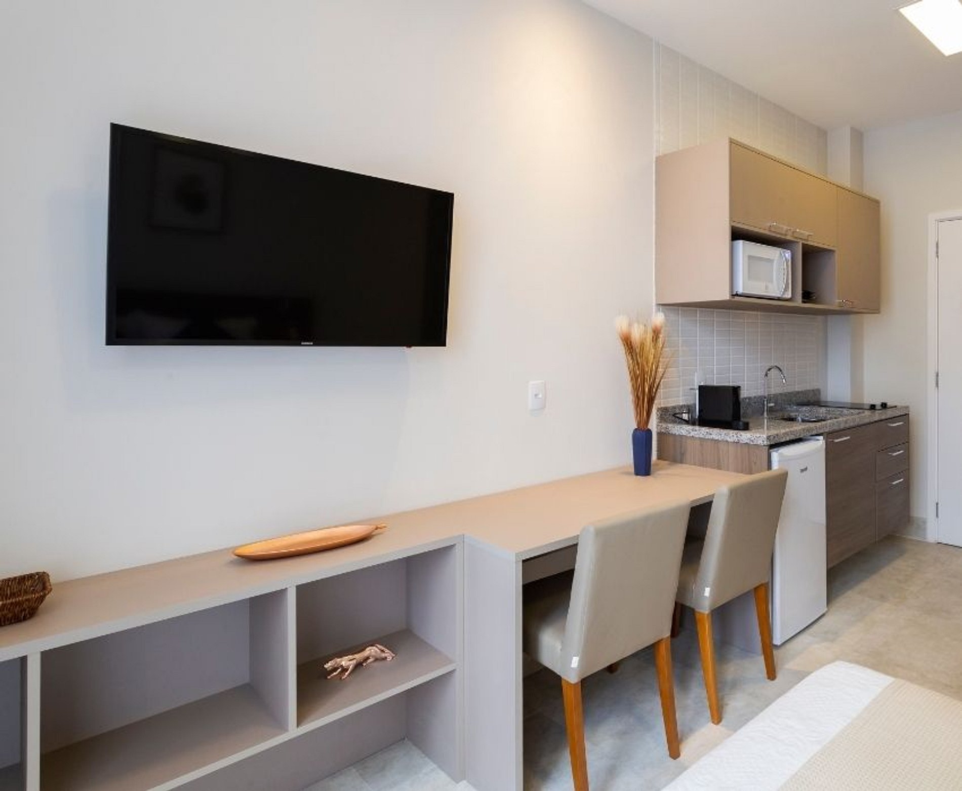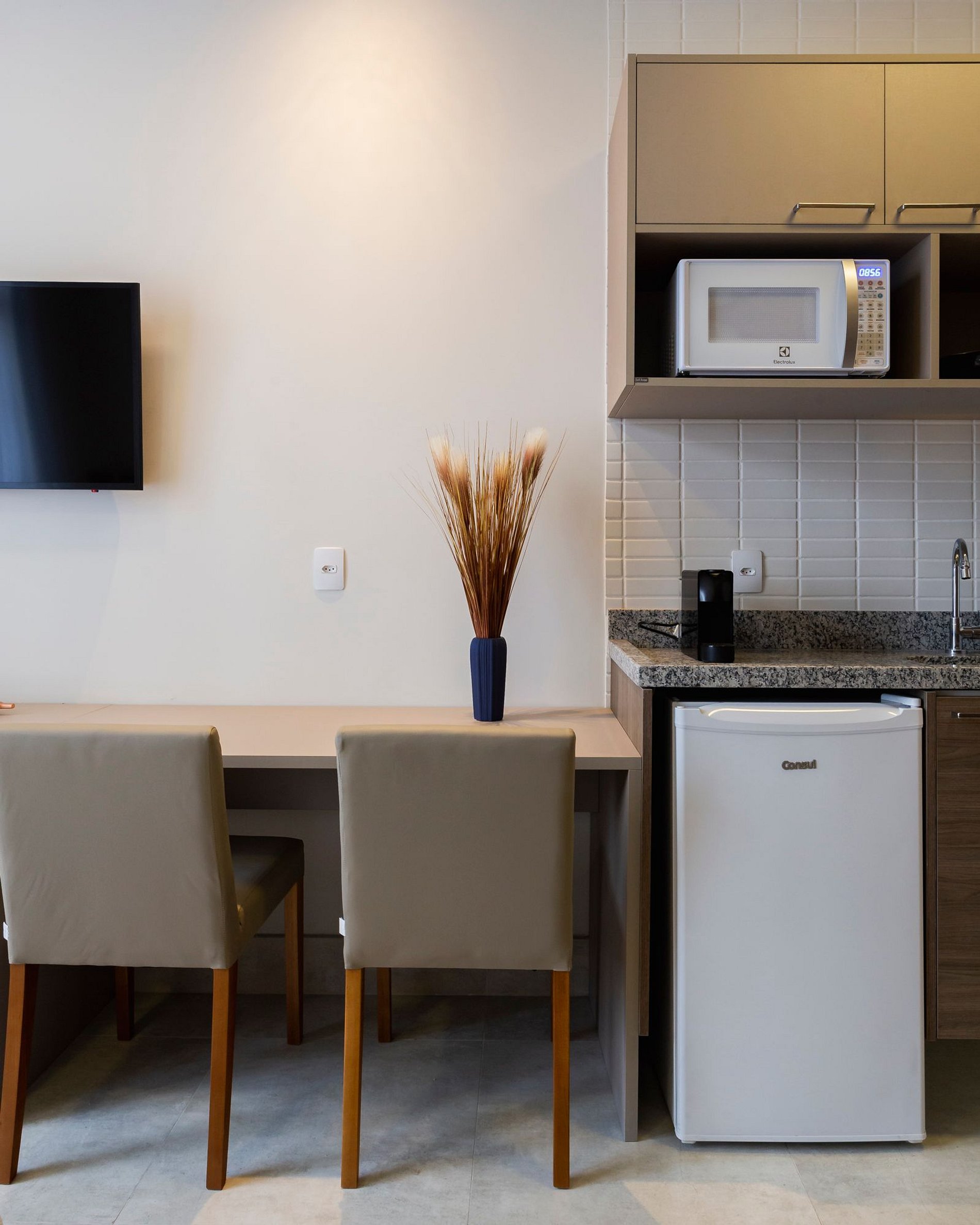O Studio está localizado no 3º andar do condomínio Jacques Pilon, primeiro retroart do Brasil. Possui Wi-Fi, Ar condicionado, Smart TV 40", Frigobar, Cooktop, Microondas, utensílios de cozinha, secador, ferro de passar. Ideal para turismo de negócios ou lazer. A mesa de refeições pode ser usada como espaço de trabalho.