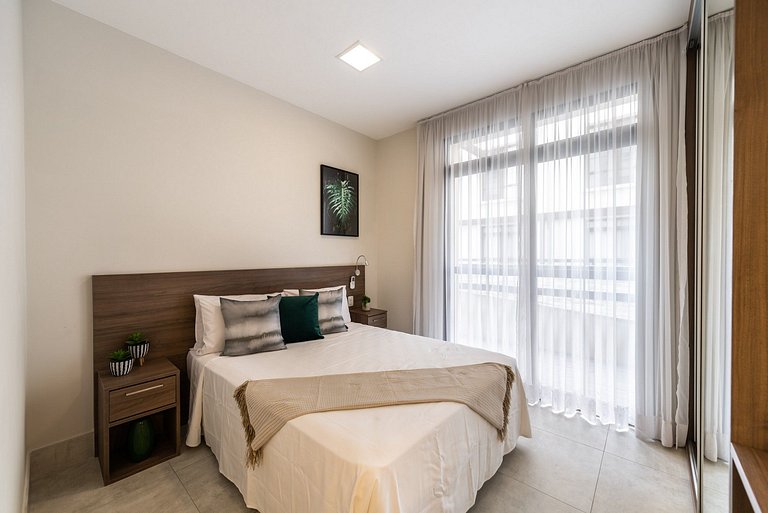 Disponibilizamos roupas de cama e banho, o ambiente é prático para preparar as refeições, seja para curta ou longa temporada. O guarda roupa é bem prático. As tomadas são 110V.