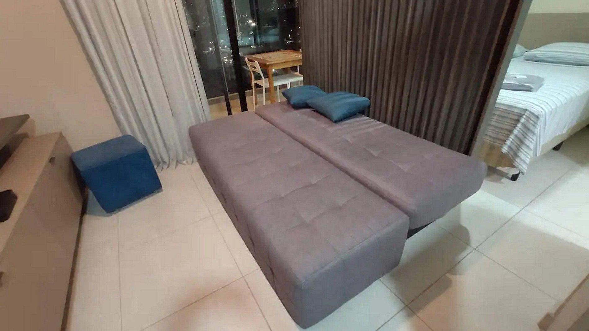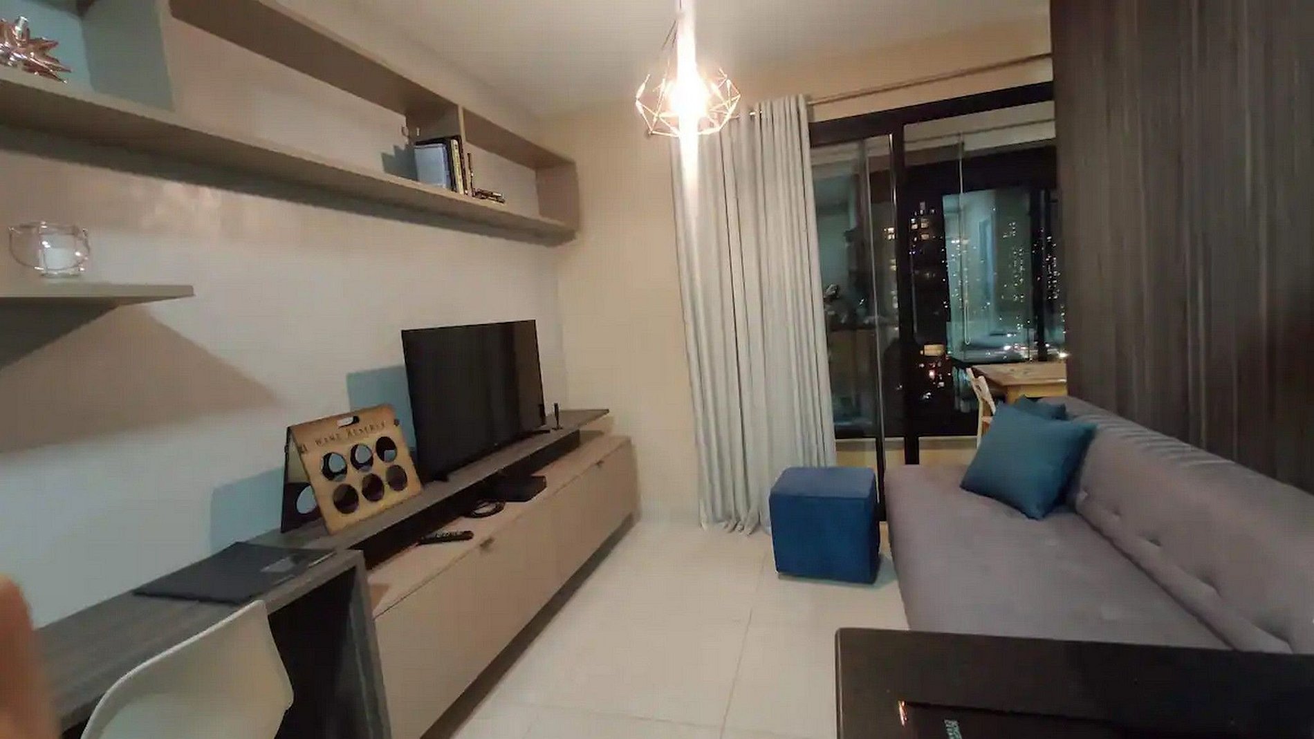 Sala: Conta com vidros duplos com vedação Anti-ruído, TV smart com antena digital (canais abertos), Wi-fi de alta velocidade Vivo, 1 sofá-cama de casal.