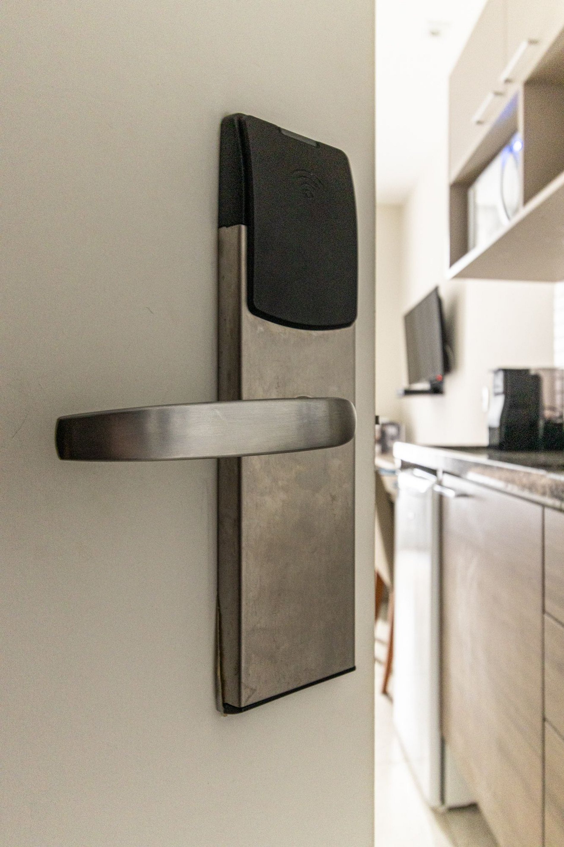 O acesso ao apto é Self check in, só apresentar o documento pessoal na portaria para que possam confirmar a reserva, e posteriormente será entregue o cartão do apto para liberar a fechadura da porta. A recepção é com segurança 24 horas.