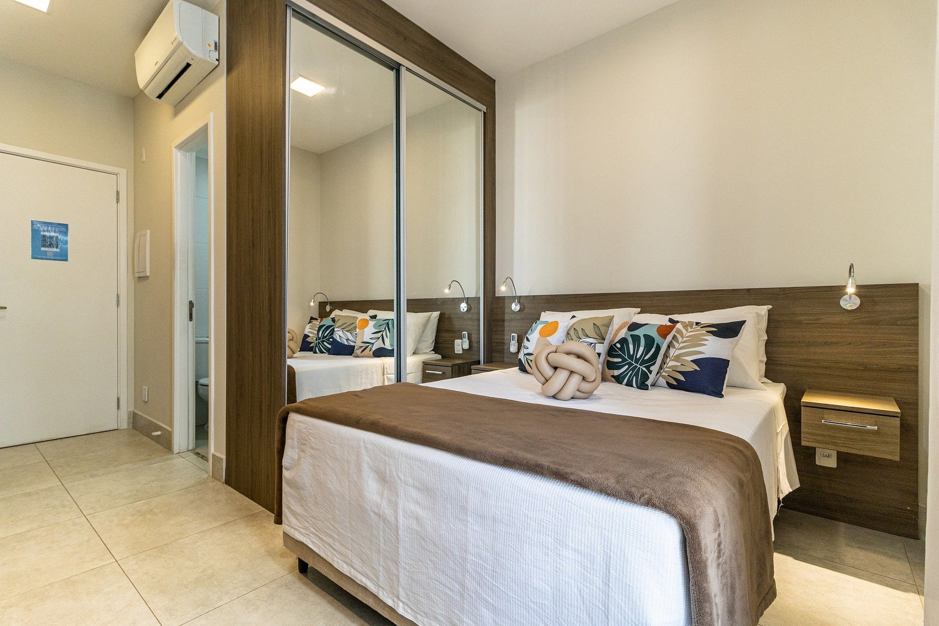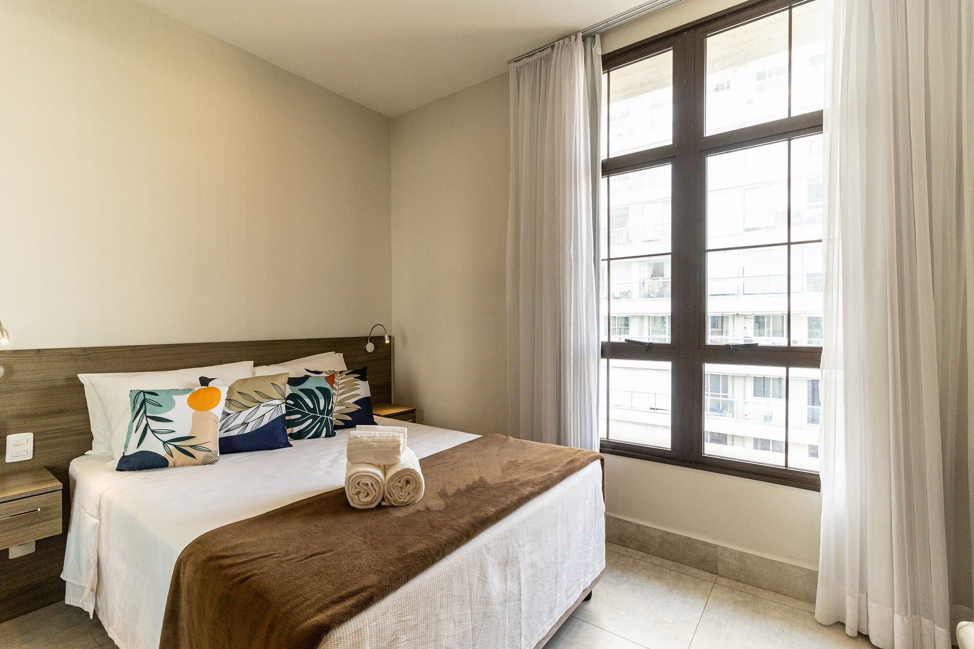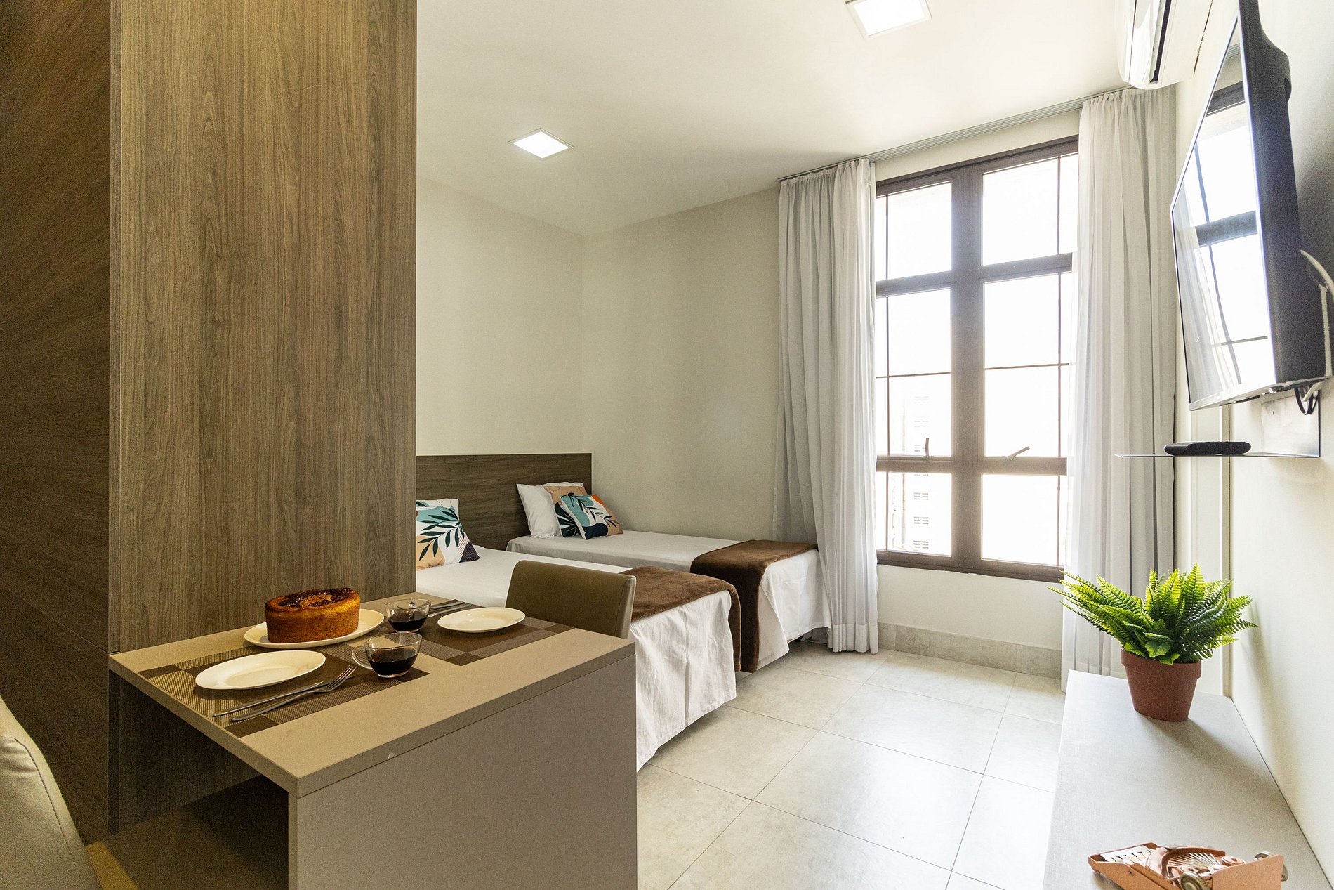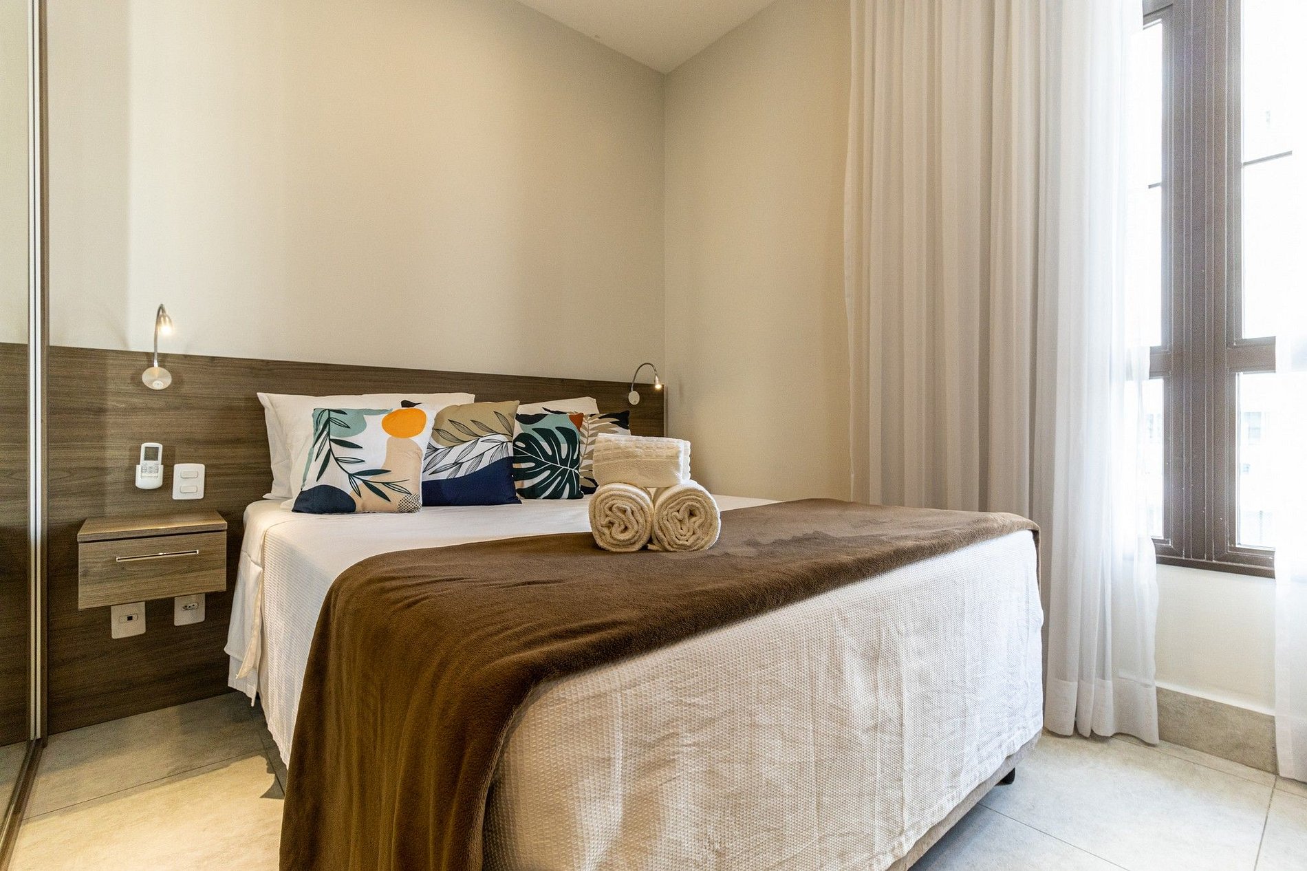 O apto tem disponível 2 camas de solteiro, o acesso ao apto é Self check in, só apresentar o documento pessoal na portaria para que possam confirmar a reserva, e posteriormente será entregue o cartão do apto para liberar a fechadura da porta. A recepção é com segurança 24 horas. Ideal para curta e longa temporada.