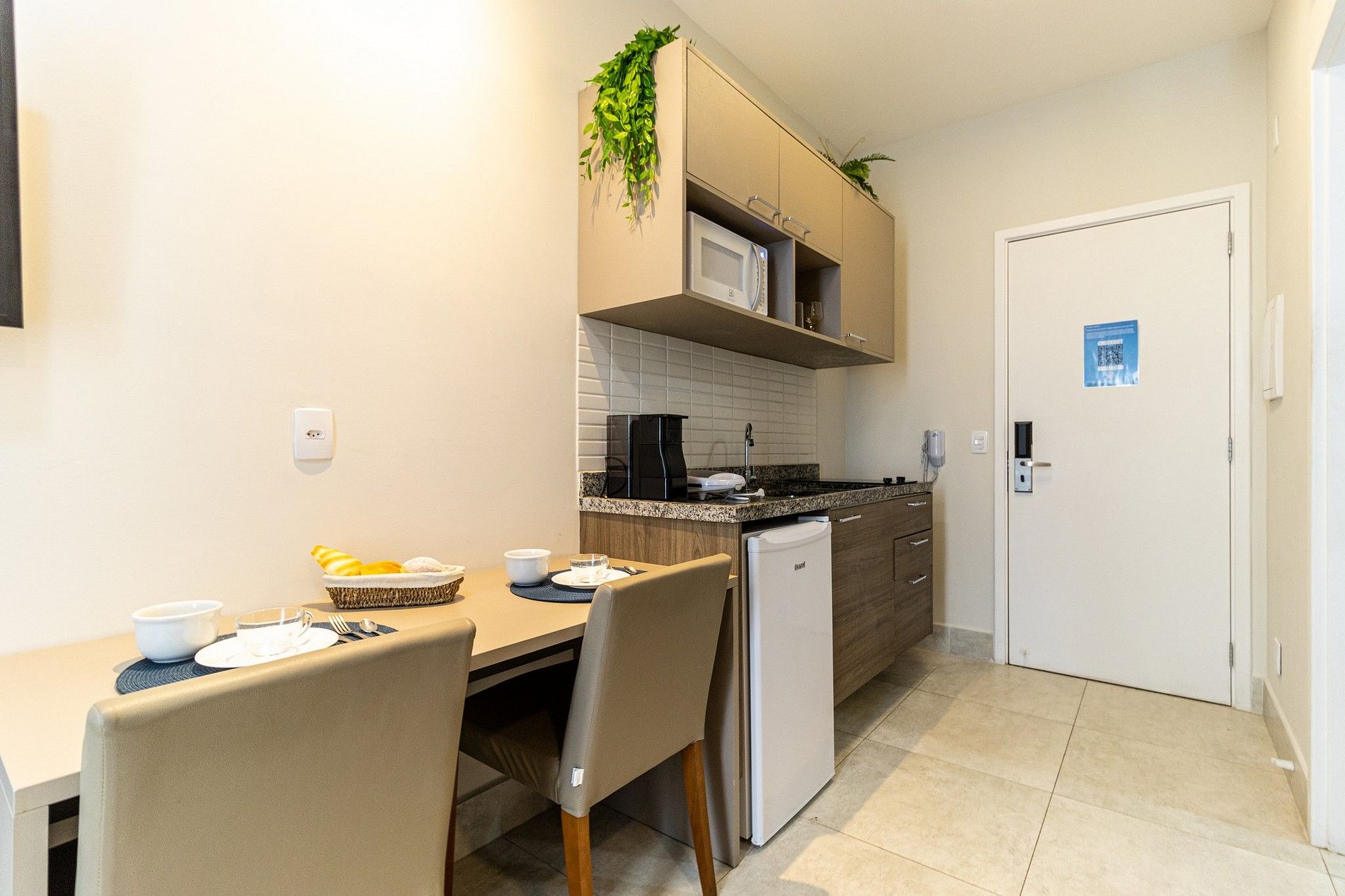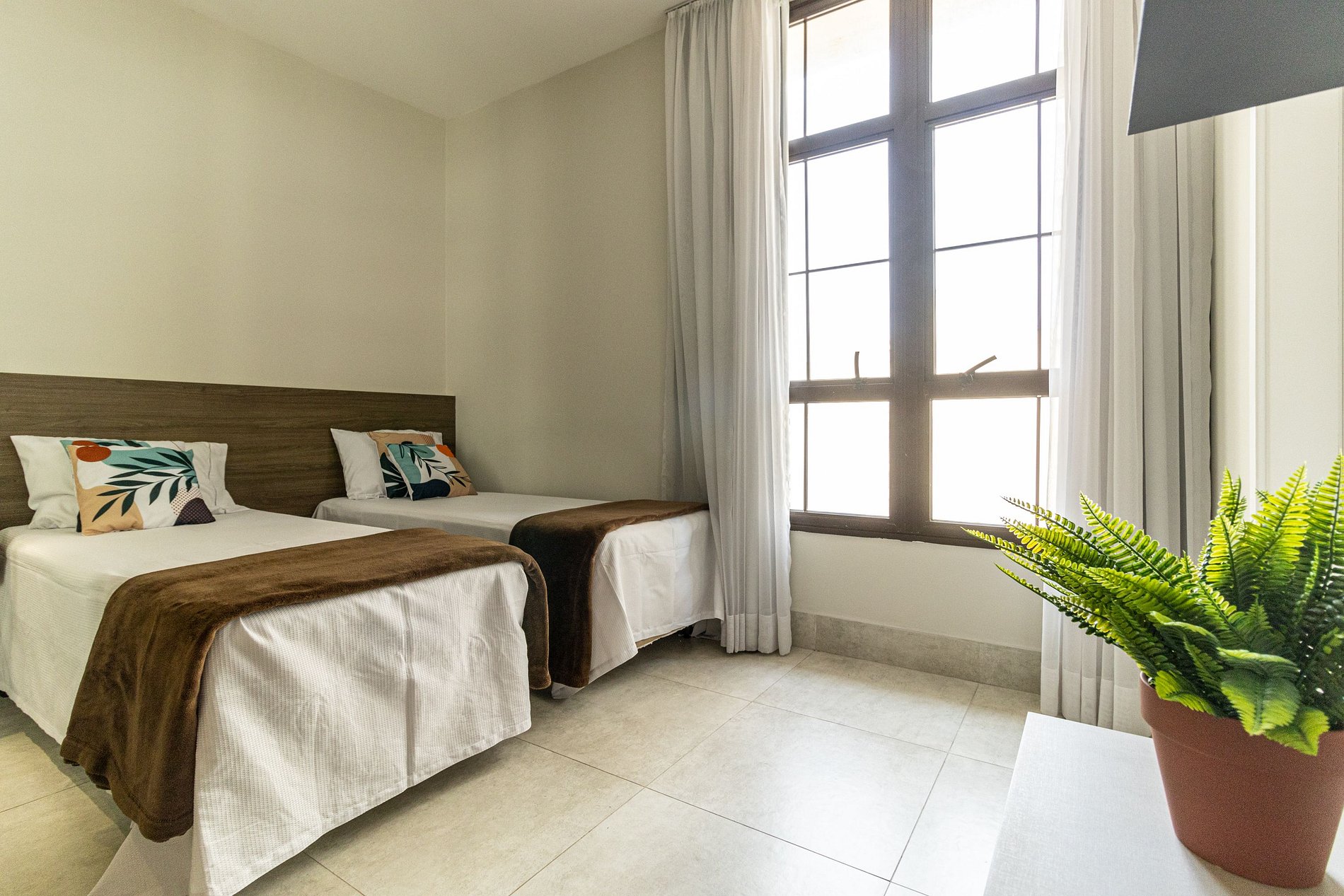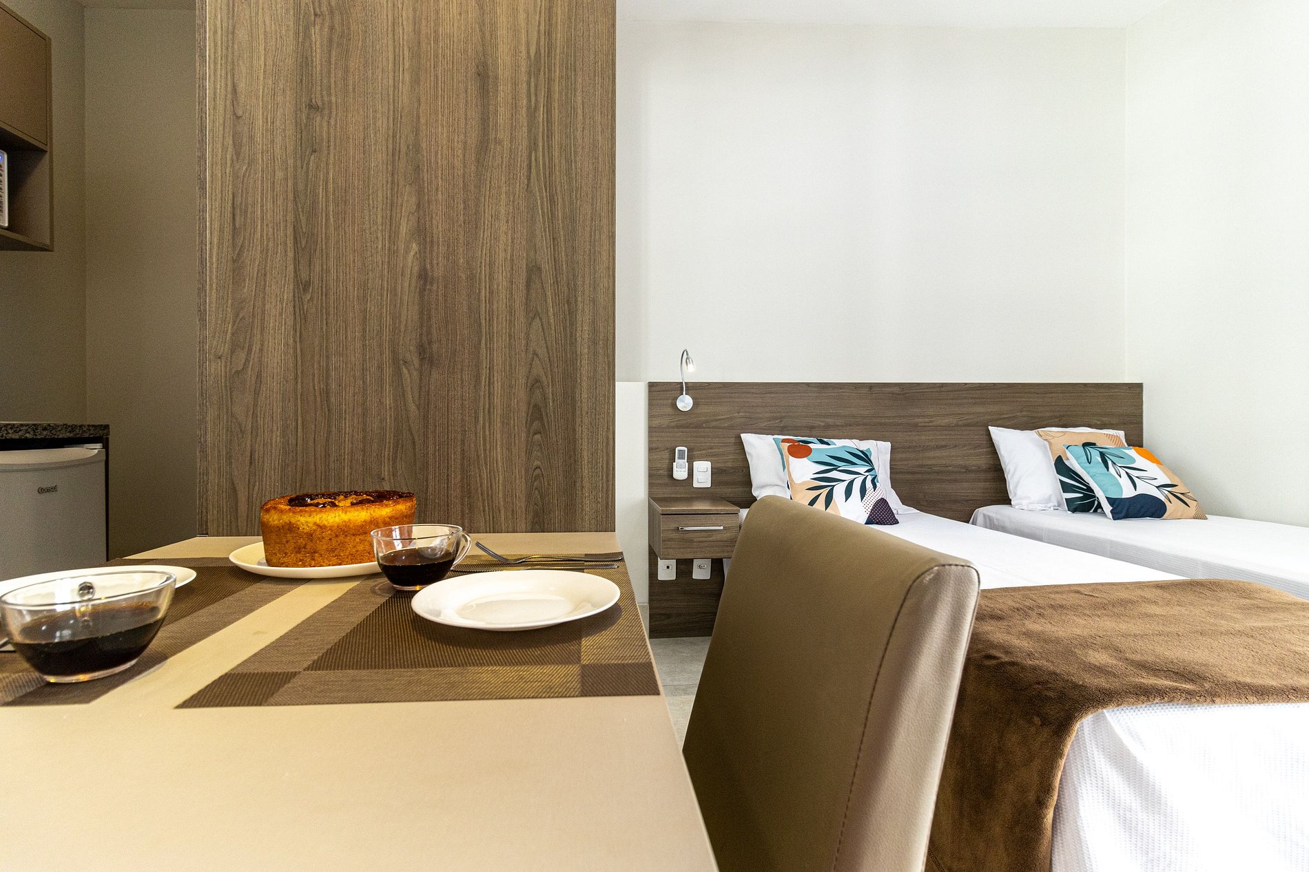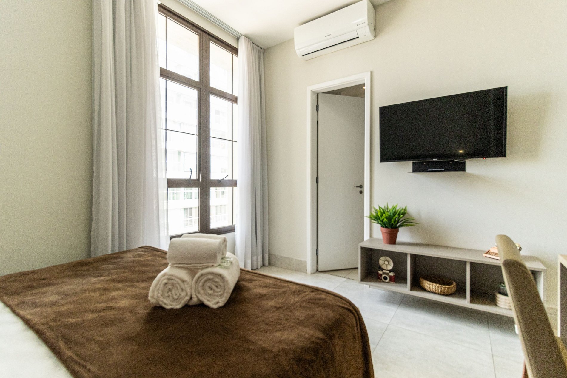 O apto tem disponível 2 camas de solteiro, o acesso ao apto é Self check in, só apresentar o documento pessoal na portaria para que possam confirmar a reserva, e posteriormente será entregue o cartão do apto para liberar a fechadura da porta. A recepção é com segurança 24 horas. Ideal para curta e longa temporada.