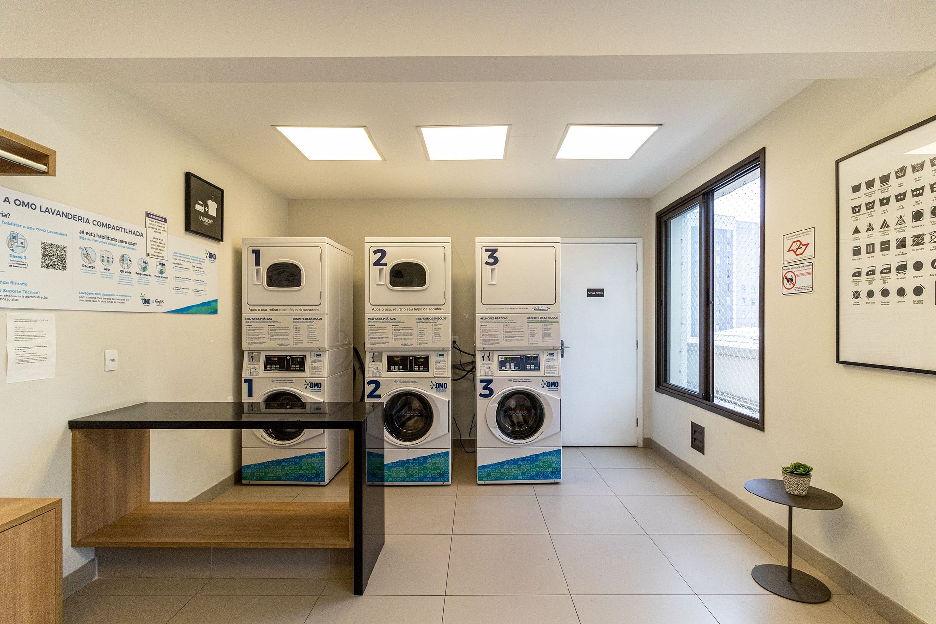 O hóspede pode utilizar o lounge e academia que ficam na cobertura, para a sala de reunião, é necessário reservar na portaria. Para utilização da lavanderia basta baixar o aplicativo da OMO através do QR Code descrito no local, onde o pagamento é descontado direto do cartão de crédito.
